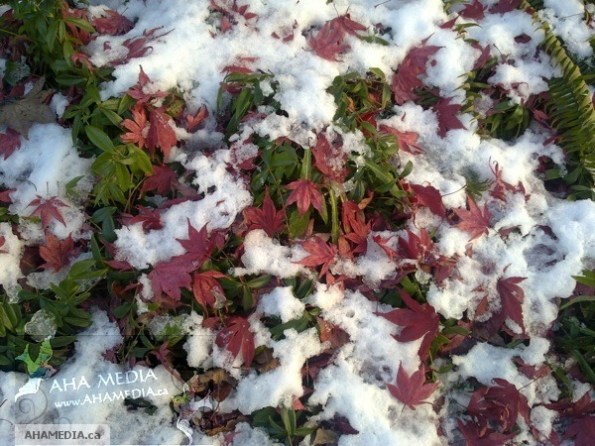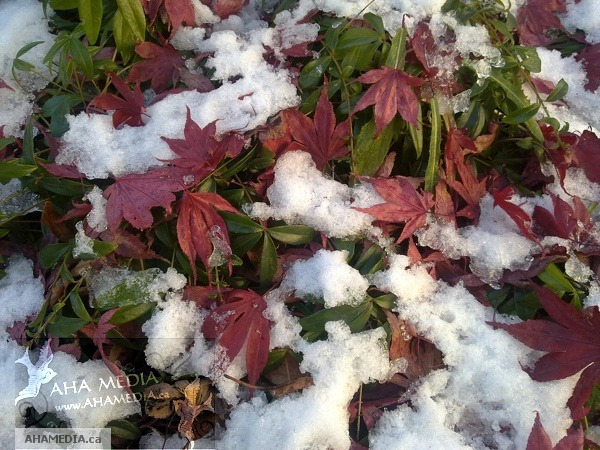 Home > AHA Media, April Smith, Christmas 2010, Downtown Eastside, DTES, Nokia N97 mini, Vancouver, Vancouver Downtown Eastside > Red Maple Leaves, Green Ivy and White Snow makes Christmas Colors!