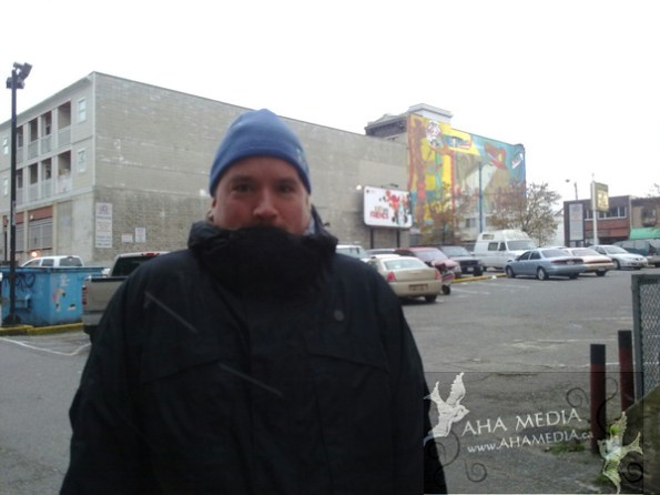 Home > AHA Media, April Smith, DTES, Peter Davies, Vancouver, Vancouver Downtown Eastside > Peter Davies of AHA MEDIA on the 2nd snowfall in Vancouver Downtown Eastside (DTES)