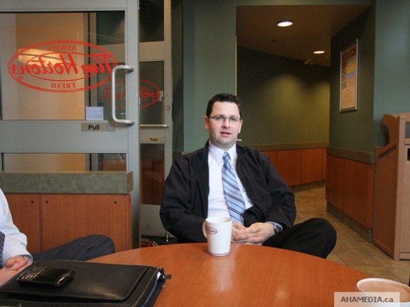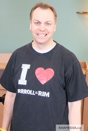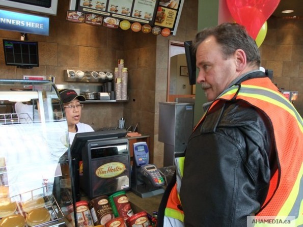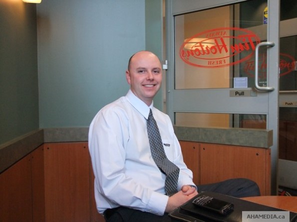 Below is a photo of Peter Davies of AHA MEDIA after he won a Free Coffee from Tim Hortons Roll Up