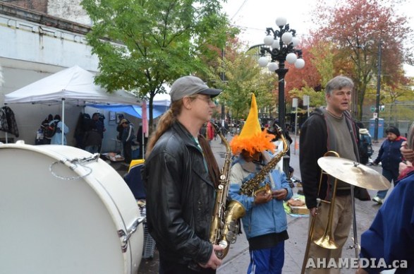 > CARNEGIE STREET BAND at Pigeon Park for 8th Annual Downtown Eastside Heart of the City Festival in Vancouver on Sunday Oct 30, 2011 > 16 AHA MEDIA films Carnegie Street Band for Heart of the City Festival 2011 in Vancouver