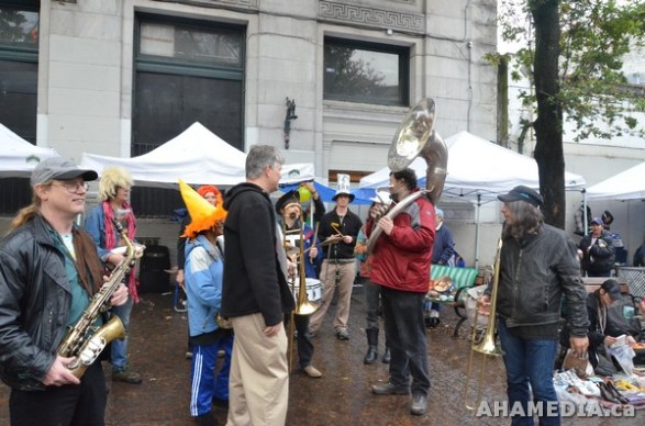 > CARNEGIE STREET BAND at Pigeon Park for 8th Annual Downtown Eastside Heart of the City Festival in Vancouver on Sunday Oct 30, 2011 > 3 AHA MEDIA films Carnegie Street Band for Heart of the City Festival 2011 in Vancouver