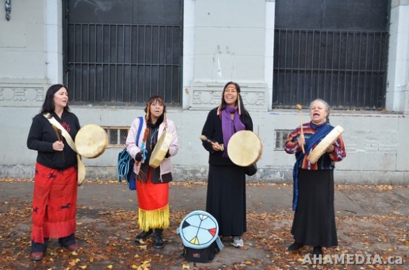 > SNOWY OWL DRUMMERS at Pigeon Park for 8th Annual Downtown Eastside Heart of the City Festival in Vancouver on Thursday Nov 3, 2011 > 2 AHA MEDIA films Snowy Owls at Heart of the City Festival 2011 in Vancouver