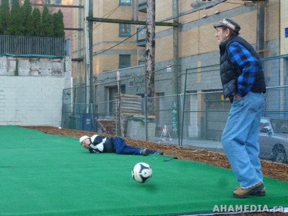 > Street Soccer players practice on new soccer pitch built in Vancouver Downtown Eastside (DTES) > 15 AHA MEDIA films Street Soccer players in Vancouver Downtown Eastside (DTES)