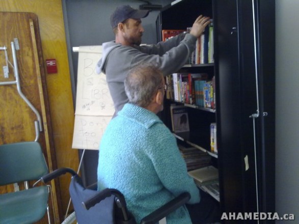> Hendrik Beune and April Smith of AHA MEDIA help build a library for Bosman Hotel Community > 37 Building a library at the Bosman Hotel in Vancouver