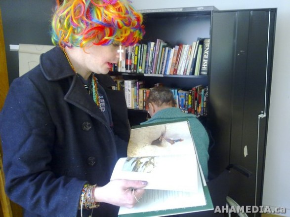 > Hendrik Beune and April Smith of AHA MEDIA help build a library for Bosman Hotel Community > 42 Building a library at the Bosman Hotel in Vancouver