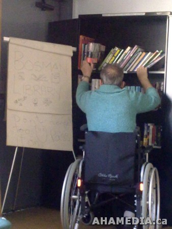 > Hendrik Beune and April Smith of AHA MEDIA help build a library for Bosman Hotel Community > 53 Building a library at the Bosman Hotel in Vancouver