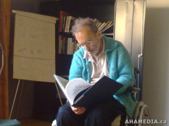 > Hendrik Beune and April Smith of AHA MEDIA help build a library for Bosman Hotel Community > 57 Building a library at the Bosman Hotel in Vancouver