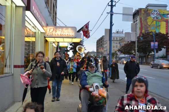 > FESTIVAL ART STROLL for 9th Annual Downtown Eastside Heart of the City Festival in Vancouver on Friday October 26, 2012 > 36 AHA MEDIA at Festival Art Stroll Procession at Heart of the City Festival 2012 in Vancouver