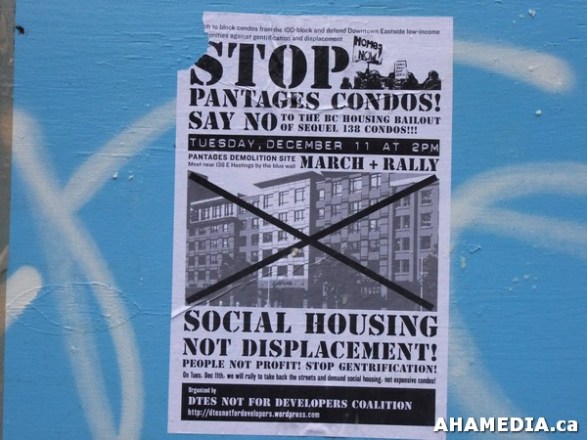 > March to block condos from the 100-block and defend Downtown Eastside low-income communities against gentrification and displacement > 1 AHA MEDIA at Rally for No Condos at Pantages Theatre in Vancouver