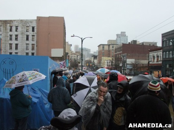 > March to block condos from the 100-block and defend Downtown Eastside low-income communities against gentrification and displacement > 25 AHA MEDIA at Rally for No Condos at Pantages Theatre in Vancouver
