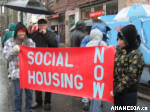 > March to block condos from the 100-block and defend Downtown Eastside low-income communities against gentrification and displacement > 48 AHA MEDIA at Rally for No Condos at Pantages Theatre in Vancouver