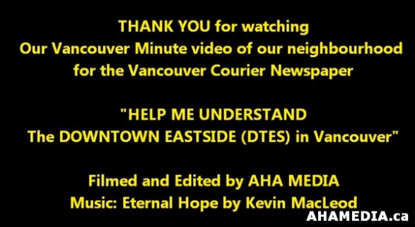 > AHA MEDIA’s video for Vancouver Minute video contest by Vancouver Courier > 33 AHA MEDIA’s Vancouver Minute Video of Downtown Eastside (DTES)