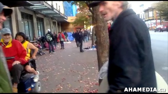 21 AHA MEDIA sees Roland Clarke with Pat’s Dogloo on Bottle Block in Vancouver DTES