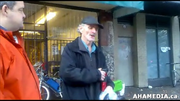 27 AHA MEDIA sees Roland Clarke with Pat’s Dogloo on Bottle Block in Vancouver DTES