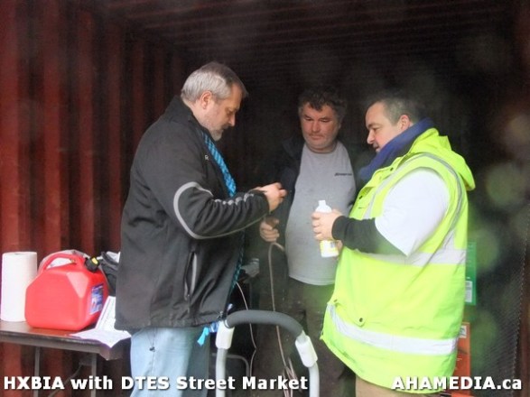 > HXBIA and DTES Street Market test a power washer and leaf blower in Vancouver > 1 AHA MEDIA at HXBIA Tool in Vancouver