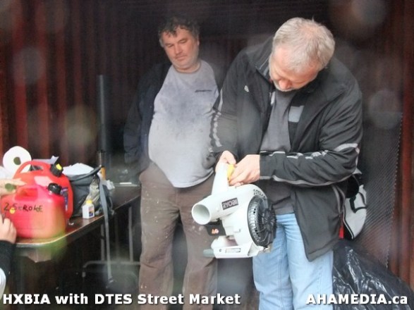 > HXBIA and DTES Street Market test a power washer and leaf blower in Vancouver > 111 AHA MEDIA at HXBIA Tool in Vancouver