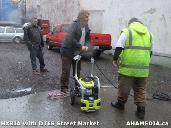 > HXBIA and DTES Street Market test a power washer and leaf blower in Vancouver > 16 AHA MEDIA at HXBIA Tool in Vancouver