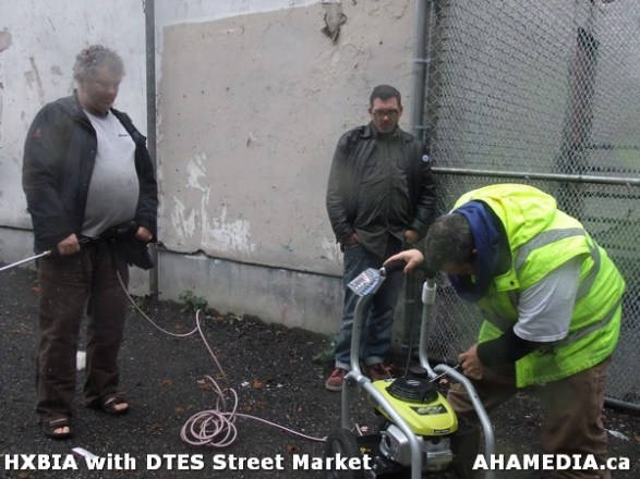> HXBIA and DTES Street Market test a power washer and leaf blower in Vancouver > 32 AHA MEDIA at HXBIA Tool in Vancouver
