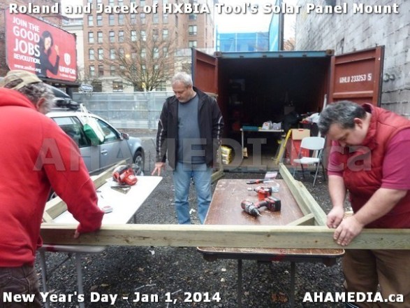 > HXBIA Tool test fit Solar Panel Mounting System in Vancouver Downtown Eastside (DTES) > 110 AHA MEDIA sees HXBIA Tool test fit solar panel mount on New Year Day Jan 1, 2014