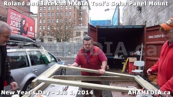 > HXBIA Tool test fit Solar Panel Mounting System in Vancouver Downtown Eastside (DTES) > 124 AHA MEDIA sees HXBIA Tool test fit solar panel mount on New Year Day Jan 1, 2014