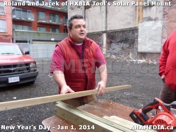 > HXBIA Tool test fit Solar Panel Mounting System in Vancouver Downtown Eastside (DTES) > 27 AHA MEDIA sees HXBIA Tool test fit solar panel mount on New Year Day Jan 1, 2014