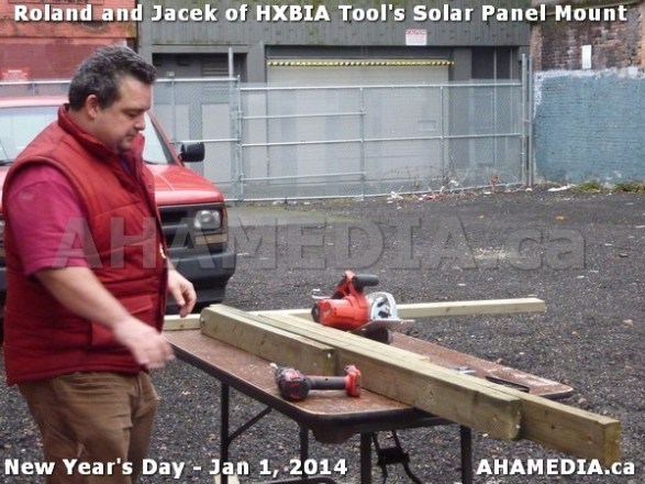 > HXBIA Tool test fit Solar Panel Mounting System in Vancouver Downtown Eastside (DTES) > 31 AHA MEDIA sees HXBIA Tool test fit solar panel mount on New Year Day Jan 1, 2014