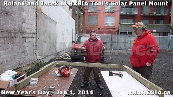 > HXBIA Tool test fit Solar Panel Mounting System in Vancouver Downtown Eastside (DTES) > 43 AHA MEDIA sees HXBIA Tool test fit solar panel mount on New Year Day Jan 1, 2014
