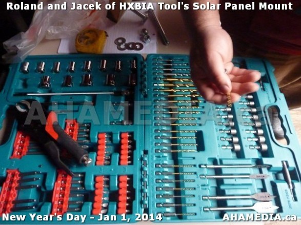 71 AHA MEDIA sees HXBIA Tool test fit solar panel mount on New Year Day Jan 1, 2014