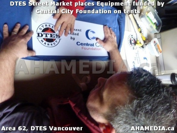 > DTES Street Market places Equipment funded by Central City Foundation on tents > 2 AHA MEDIA sees DTES Street Market place Sponsorship by Central City Foundation on Tents