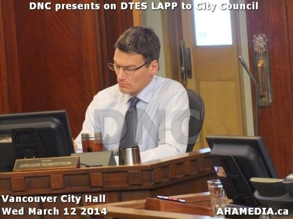 > DNC – Downtown Eastside Neighbourhood Council , Co-Chairs of DTES LAPP present to Vancouver City Council > 2 AHA MEDIA at DNC speeches on DTES LAPP for Vancouver City Council
