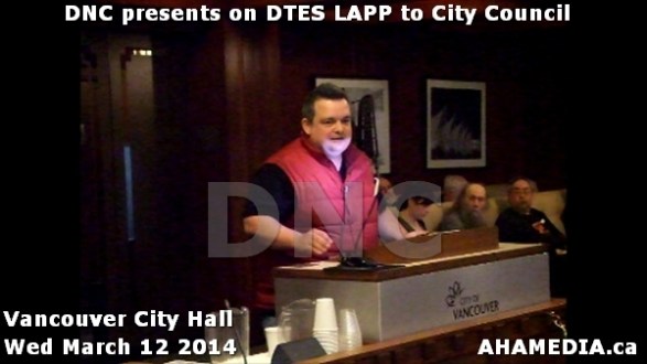 > DNC – Downtown Eastside Neighbourhood Council , Co-Chairs of DTES LAPP present to Vancouver City Council > 25 AHA MEDIA at DNC speeches on DTES LAPP for Vancouver City Council
