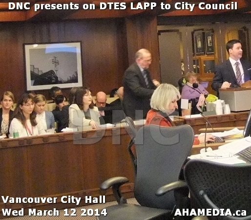 > DNC – Downtown Eastside Neighbourhood Council , Co-Chairs of DTES LAPP present to Vancouver City Council > 9 AHA MEDIA at DNC speeches on DTES LAPP for Vancouver City Council
