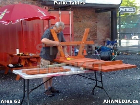 > Patio tables and umbrellas at Area 62 for DTES Street Market in Vancouver > 3 AHA MEDIA at Patio Tables for DTES Street Market in Vancouver