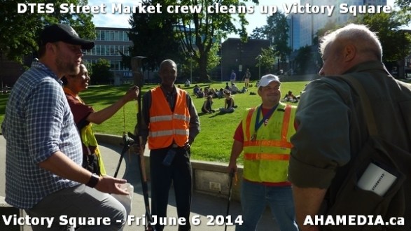 > DTES Street Market crew cleans up Victory Square in Vancouver > 46 AHA MEDIA sees DTES Street Market crew clean up Victory Square in Vancouver