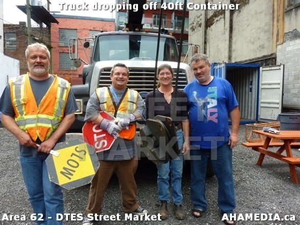 > Truck dropping off 40ft Storage Container at Area 62 – DTES Street Market in Vancouver > 26 AHA MEDIA sees Truck drop off 40ft Storage Container for DTES Street Market in Vancouver