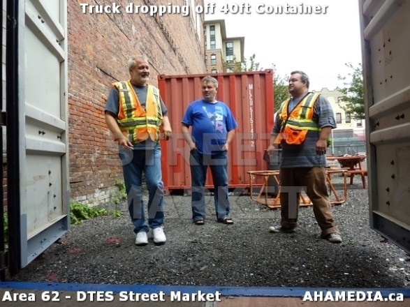 > Truck dropping off 40ft Storage Container at Area 62 – DTES Street Market in Vancouver > 37 AHA MEDIA sees Truck drop off 40ft Storage Container for DTES Street Market in Vancouver