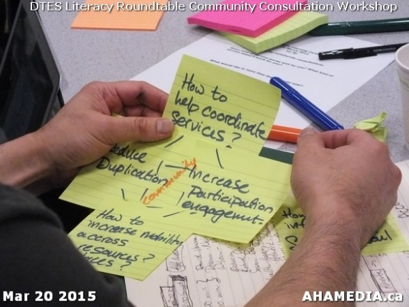 19 DTES Literacy Roundtable Community Consultation Workshop Mar 20 2015 in Vancouver