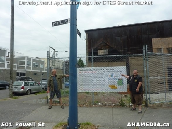 6 AHA MEDIA at Development Application Sign at 501 Powell St for DTES Street Market