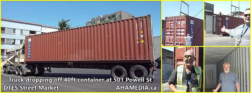 Truck dropping off 40ft Storage Container at 501 Powell St for DTES Street Market