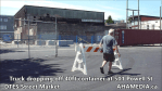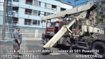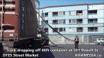 > 501 Powell St, AHA Media, Community Engagement, DTES Street Market, Roland Clarke, Vancouver > Truck dropping off 40ft Storage Container at 501 Powell St for DTES Street Market