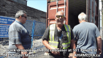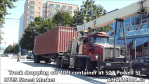 Truck dropping off 40ft Storage Container at 501 Powell St for DTES Street Market in Vancouver