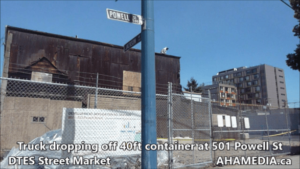 > Truck dropping off 40ft Storage Container at 501 Powell St for DTES Street Market > Truck dropping off container at 501 Powell for DTES Street Market (1)