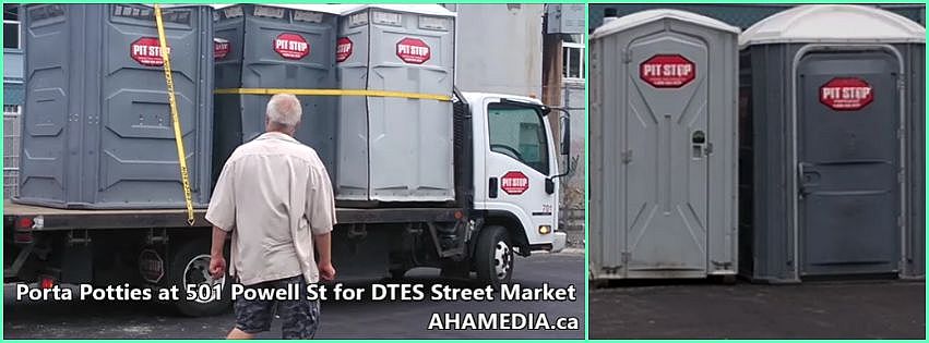 Porta Potties at 501 Powell St for DTES Street Market in Vancouver