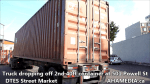 > 501 Powell St, AHA Media, Community Engagement, Downtown Eastside, DTES, DTES Street Market, Roland Clarke, Vancouver, Vancouver Downtown Eastside > Truck dropping off 2nd 40ft Storage Container at 501 Powell St for DTES Street Market