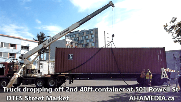 1 Truck dropping off 2nd 40ft container at 501 Powell St for DTES Street Market (5)