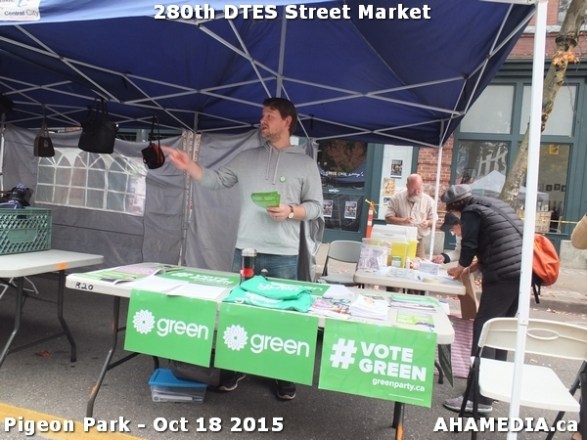 > Wes Regan, Green Party of Canada candidate for Vancouver East > 42 AHA MEDIA at 280th DTES Street Market in Vancouver on Oct 18, 2015