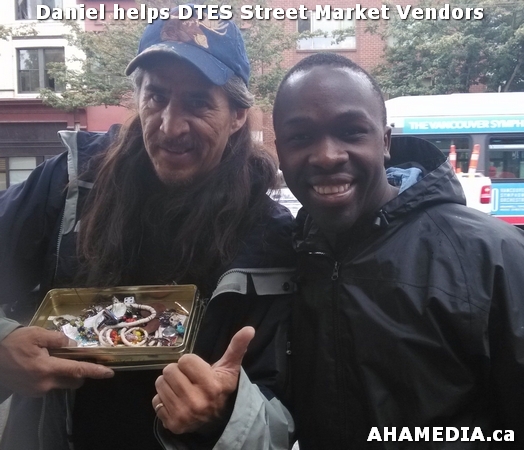 > AHA Media, Area 62 - 62 East Hastings, Community Engagement, Downtown Eastside, DTES, DTES Street Market, Vancouver, Vancouver Downtown Eastside > Daniel helps DTES Street Market vendors