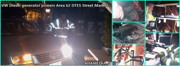 > VW Diesel generator powers Area 62 DTES Street Market > 0 VW Diesel generator powers Area 62 DTES Street Market in Vancouver on Nov 16 2015