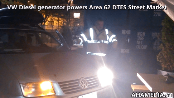 > VW Diesel generator powers Area 62 DTES Street Market > 1 AHA MEDIA sees VW Diesel generator power Area 62 DTES Street Market in Vancouver on Nov 16 2015 (1)