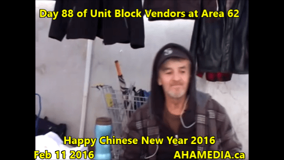 > 88th Day of Unit Block Vendors going to Area 62 DTES Street Market in Vancouver on Feb 11 2016 > 1 AHA MEDIA at 88th day of Unit Block Vendors at Area 62 on Feb 11 2016 (13)